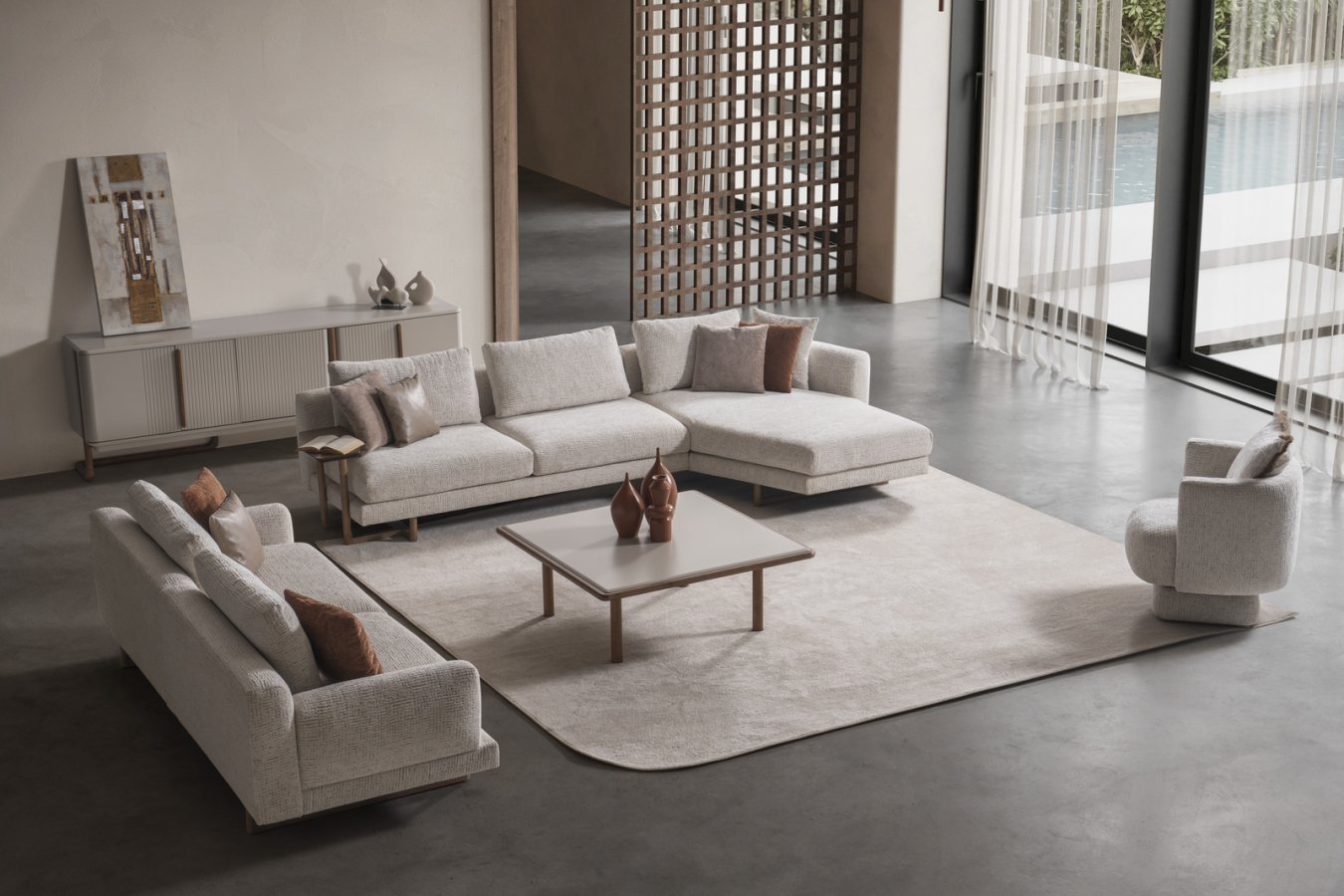 Aksa Modern Koltuk Takımı, net çizgileri, dengeli form yapısı ve modern yüzey detaylarıyla çağdaş yaşam alanları için tasarlanmıştır. Konforlu oturum yapısı ve sade estetiğiyle salonlarda ferah ve düzenli bir atmosfer sunar.Aksa Modern Koltuk Takımı Masko'da Modern Koltuk Takımları satan firmalardan By Selim Furniture firmasının bir ürünüdür.