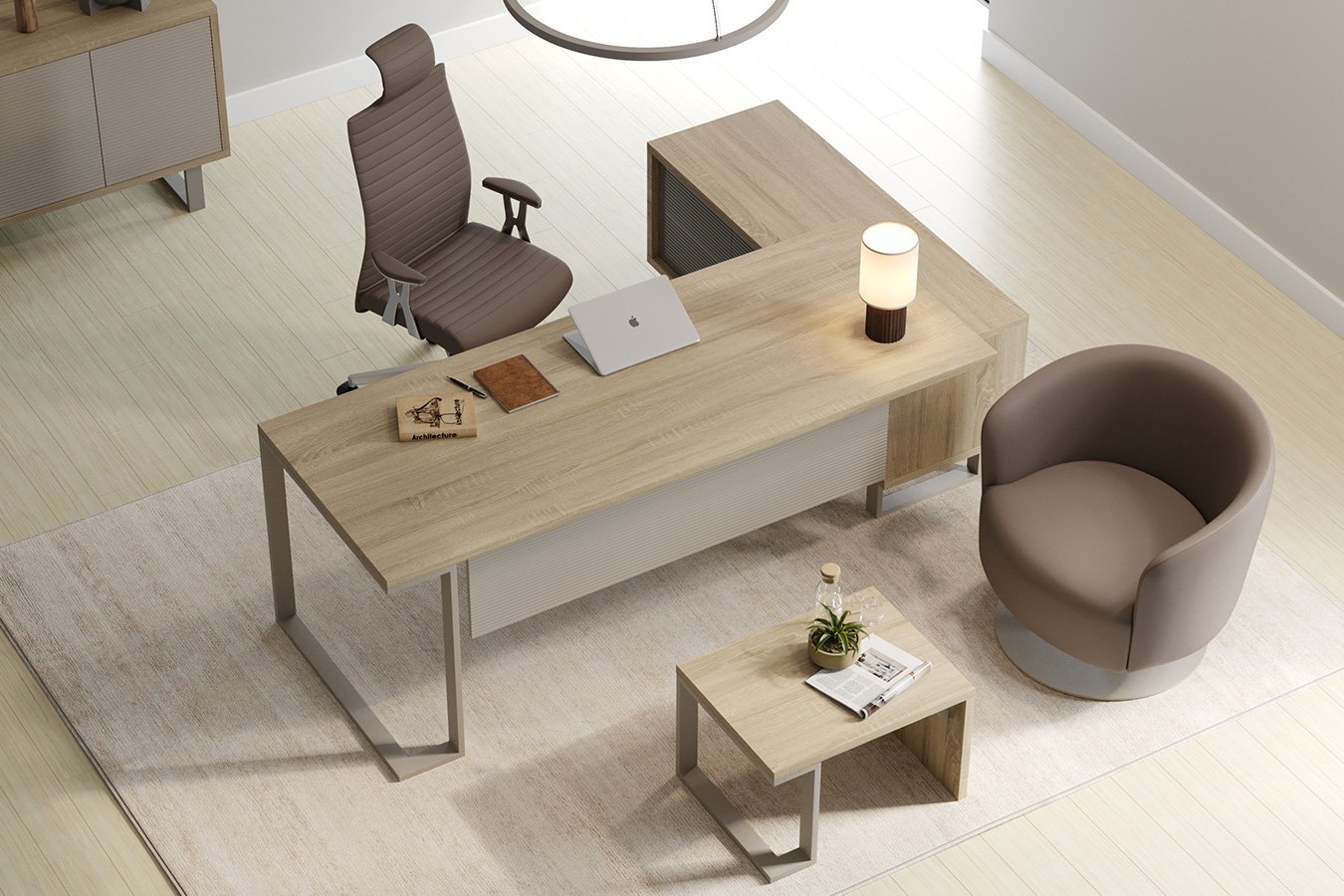 Bondo Etajerli Yönetici Takımı, melamin gövdesi ve membran yüzey detaylarıyla çağdaş ofis tasarımını yansıtır. Etajerli masa, yönetici dolabı ve sehpadan oluşan takım, depolama, çalışma ve misafir alanlarını fonksiyonel biçimde bir araya getirir.Bondo Etajerli Yönetici Takımı Masko'da Modern Koltuk Takımları satan firmalardan Teknik Ofis Mobilyaları firmasının bir ürünüdür.