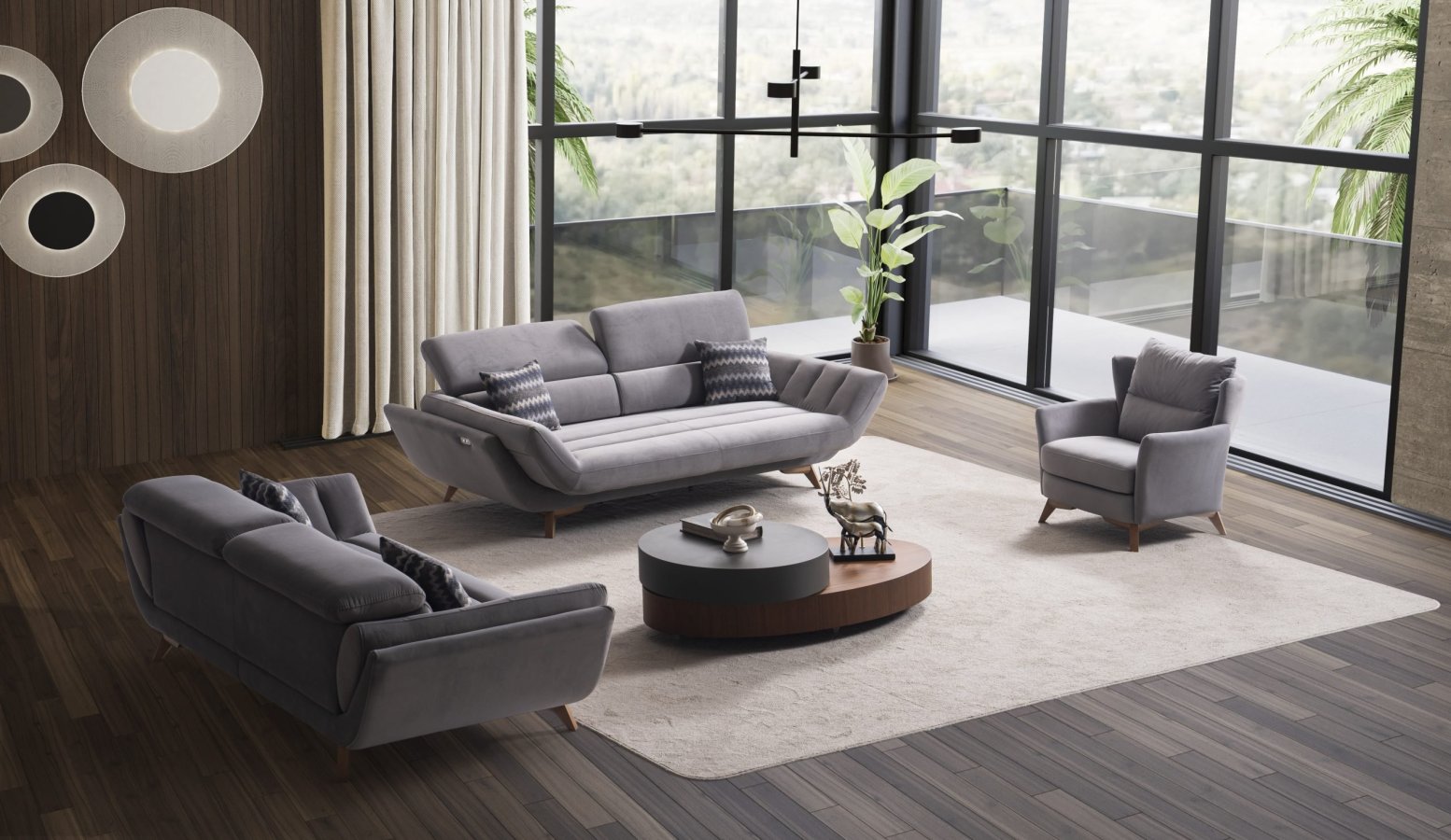 Eftelya Modern Koltuk Takımı, net çizgileri, dengeli form yapısı ve modern tasarım diliyle çağdaş yaşam alanları için tasarlanmıştır. Konforlu oturum yapısı ve sade estetiğiyle salonlarda ferah, düzenli ve şık bir atmosfer sunar.Eftelya Modern Koltuk Takımı Masko'da Modern Koltuk Takımları satan firmalardan By Selim Furniture firmasının bir ürünüdür.