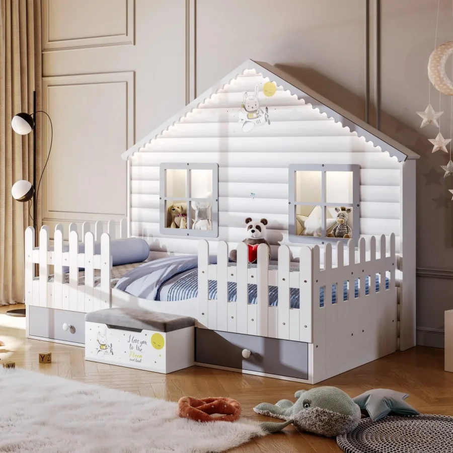 Küçük Ev Montessori, ev formundaki tasarımıyla sıcak ve keyifli bir uyku alanı sunar. 100x200 ölçüsüyle kullanışlı ve dekoratif bir montessori karyoladır.Küçük Ev Montessori Masko'da Bebek, çocuk, genç odası mobilayaları satan firmalardan Meltem Kids firmasının bir ürünüdür.