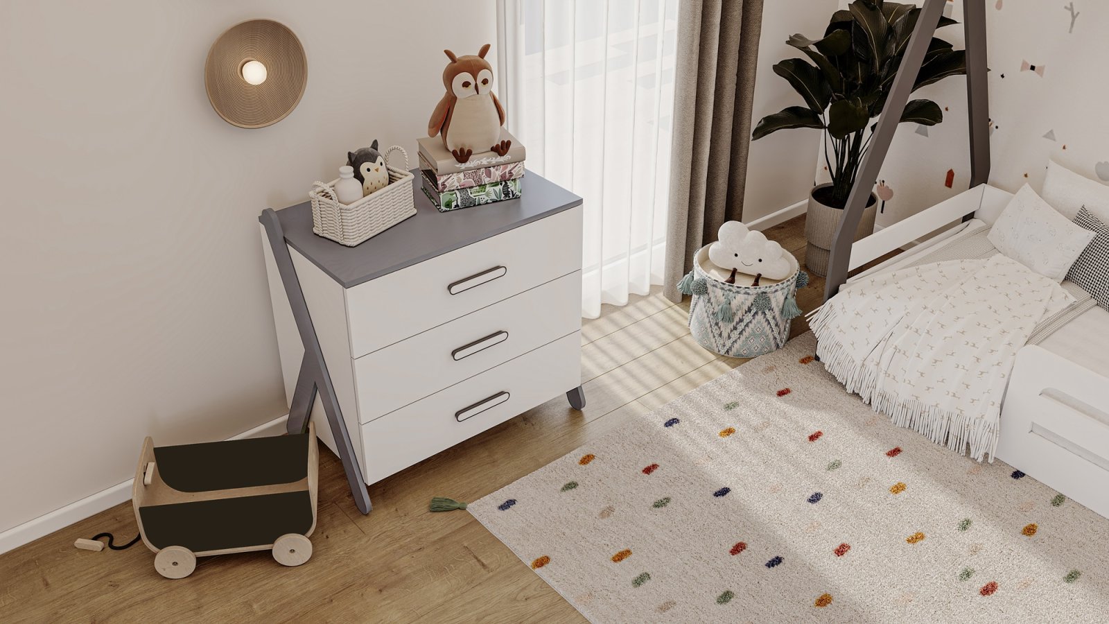 Maya Bebek Odası – Hayal Gücünü Besleyen Zarif Tasarım Maya bebek odası, modern tasarım anlayışını eğlenceli detaylarla buluşturarak bebeğiniz için hem güvenli hem de ilham verici bir yaşam alanı sunar. Yumuşak hatları, sade renk paleti ve özgün tasarım dokunuşlarıyla Maya, odalara sıcak ve huzurlu bir atmosfer kazandırır. Doğadan ve minimal çizgilerden ilham alan Maya serisi, ferah ve dengeli bir görünüm sunarken aynı zamanda çocukların hayal dünyasını destekleyen detaylar içerir. Yatak tasarımındaki zarif form ve dekoratif üst yapı, odaya masalsı bir karakter katar. Fonksiyonelliği ön planda tutan Maya bebek odası; geniş hacimli gardırop, kullanışlı çekmeceler ve ergonomik yatak yapısıyla günlük kullanımda maksimum kolaylık sağlar. Her detay, hem ebeveynlerin ihtiyaçlarını karşılamak hem de bebeğinizin konforunu artırmak için düşünülmüştür. Sağlığa uygun, kaliteli malzemelerle üretilen Maya serisi, güvenli kullanım sunarken dayanıklı yapısıyla uzun yıllar boyunca ilk günkü şıklığını korur. Zamansız tasarım anlayışı sayesinde, bebeğiniz büyüdükçe de uyum sağlayabilecek bir yaşam alanı sunar. Modern ve eğlenceli stilin kusursuz dengesiyle Maya bebek odası, hem şık hem de sıcak bir ortam arayan aileler için ideal bir tercihtir. Maya bebek odası ile bebeğinizin dünyasını hayallerle şekillendirin.Maya Bebek Odası Masko'da Bebek, Çocuk, Genç Takımları satan firmalardan Aviva firmasının bir ürünüdür.