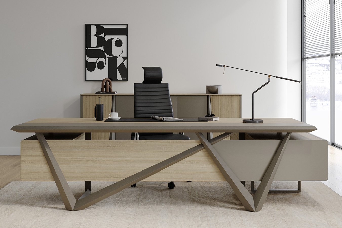 Neron Konsollu Ofis Takımı, modern ofislerin ihtiyaçları düşünülerek tasarlanmış uyumlu bir settir. Bu takım, entegre konsollu bir yönetici masası, geniş depolama imkanı sunan bir ofis dolabı ve şık bir sehpadan oluşur.Neron Konsollu Ofis Takımı Masko'da Modern Koltuk Takımları satan firmalardan Teknik Ofis Mobilyaları firmasının bir ürünüdür.