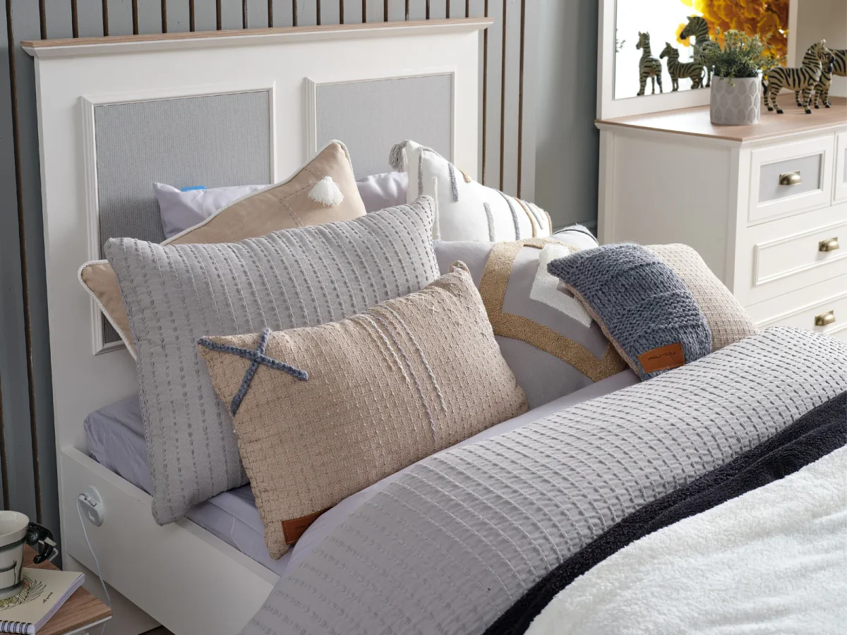 Palmera Mobilya'nın en beğenilen koleksiyonlarından biri olan Odessa Genç Odası, odaklanmayı kolaylaştıran sakin yapısı ve göz dolduran estetiğiyle yeni nesil yaşam alanlarını yeniden tanımlıyor. Ahşabın sıcaklığını antrasit ve gri tonların modernliğiyle birleştiren bu takım, gençlerin hem verimli ders çalışabileceği hem de huzurla dinlenebileceği bir atmosfer sunuyor. Genç odası modelleri arasında "zamansız tasarım" arayanların ilk tercihi olan Odessa; geniş yatak seçenekleri (bazalı/bazasız) ve şık şifonyer üniteleriyle bir gencin tüm ihtiyaçlarını tek bir konseptte karşılıyor. Masko’daki mağazamızda dokusunu yakından inceleyebileceğiniz bu takım, kaliteyi ulaşılabilir şıklıkla sunuyor.Odessa Genç Odası Takımı Masko'da Genç, Çocuk, Bebek mobilyası satan firmalardan Palmera firmasının bir ürünüdür.
