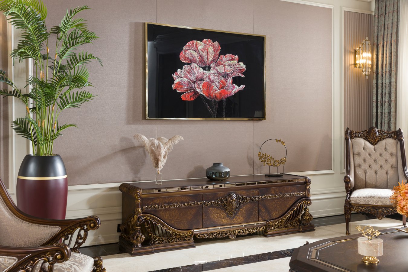 Soho Klasik TV Ünitesi, el işçiliğiyle işlenmiş ahşap detayları, dengeli klasik formu ve zarif duruşuyla prestijli salonlar için tasarlanmıştır. Zamansız tasarımıyla klasik dekorasyonda şık ve tamamlayıcı bir odak noktası sunar.Soho Klasik TV Ünitesi Masko'da Modern Koltuk Takımları satan firmalardan By Selim Furniture firmasının bir ürünüdür.