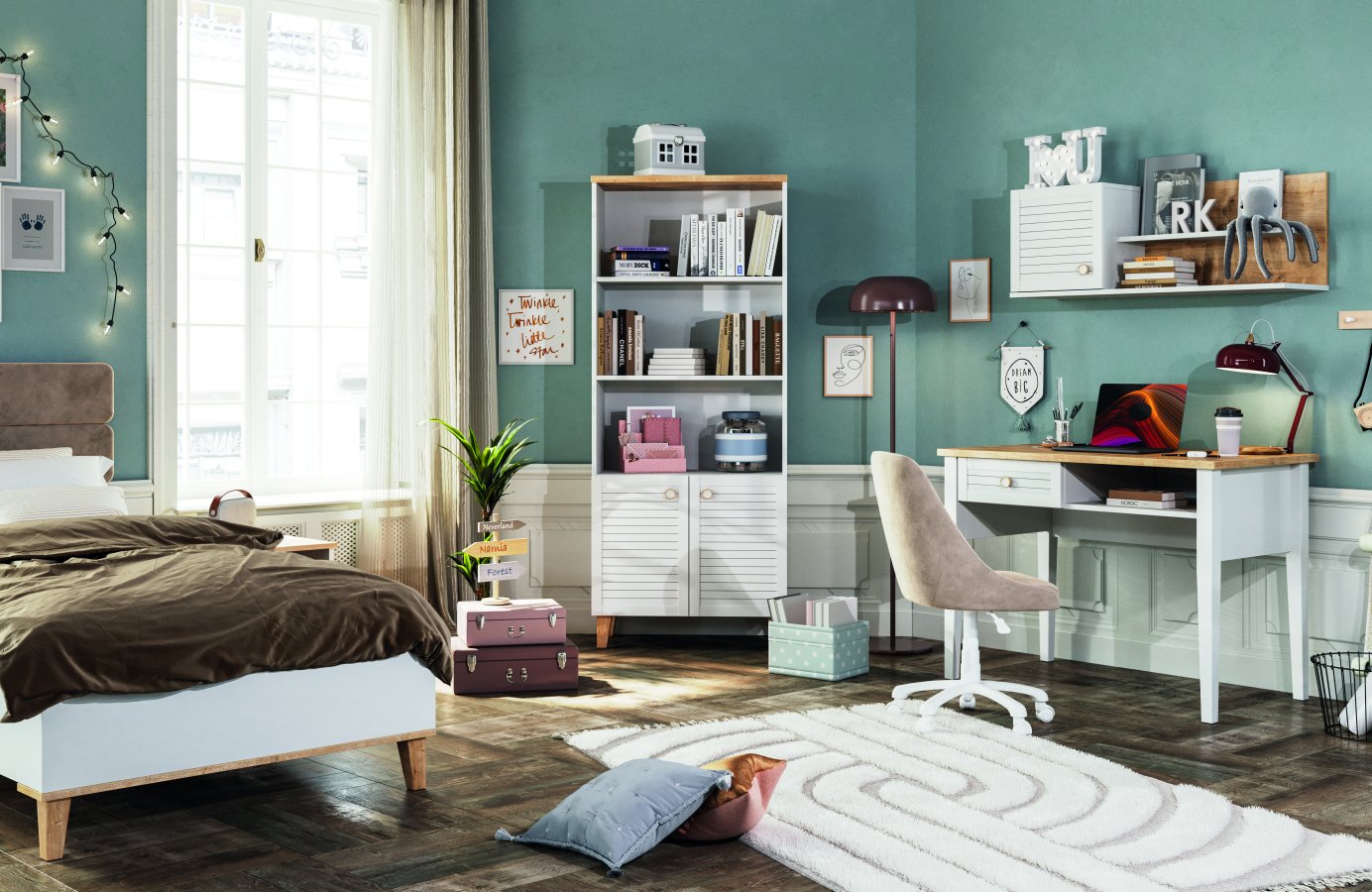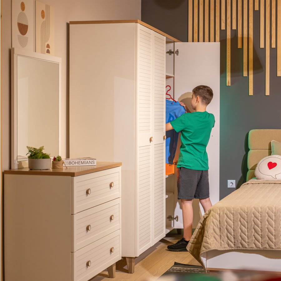 Vera Genç Odası, zarif detayları ve tamamlayıcı modülleriyle şık bir genç odası sunar. Karyola, çalışma masası, dolap, şifonyer ve kitaplık seçenekleriyle kullanışlı bir takım olup ölçü ve renk seçeneklerimiz mevcuttur.Vera Genç Odası Masko'da Bebek, çocuk, genç odası mobilayaları satan firmalardan Meltem Kids firmasının bir ürünüdür.